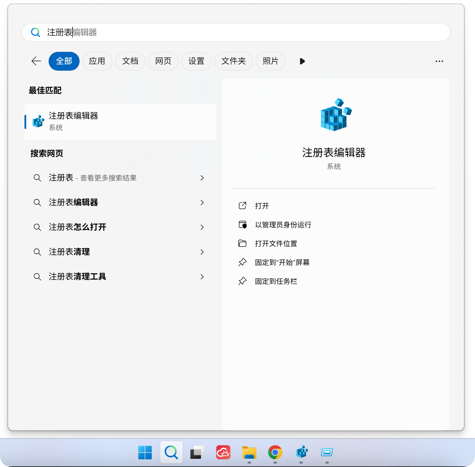 搜索输入注册表,打开注册表