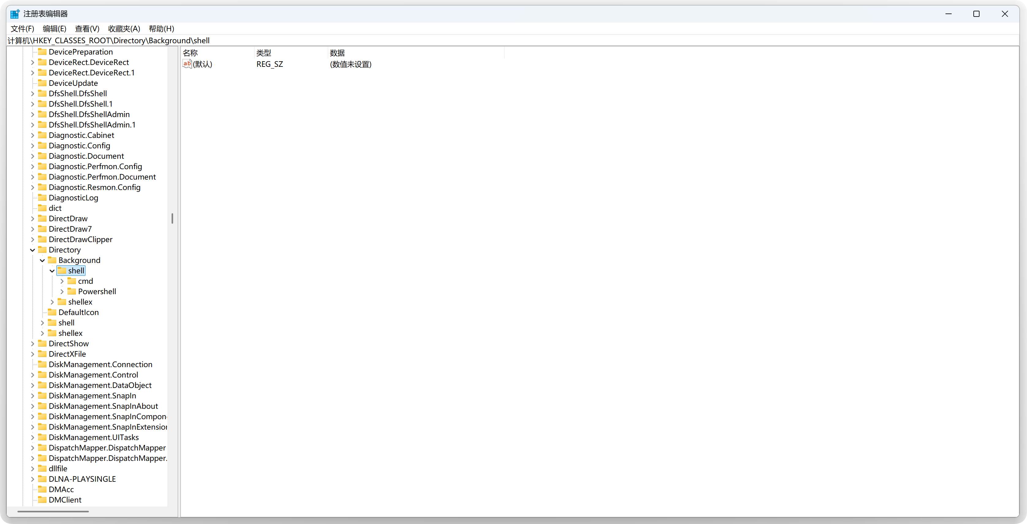 注册表上面直接输入计算机\HKEY_CLASSES_ROOT\Directory\Background\shell