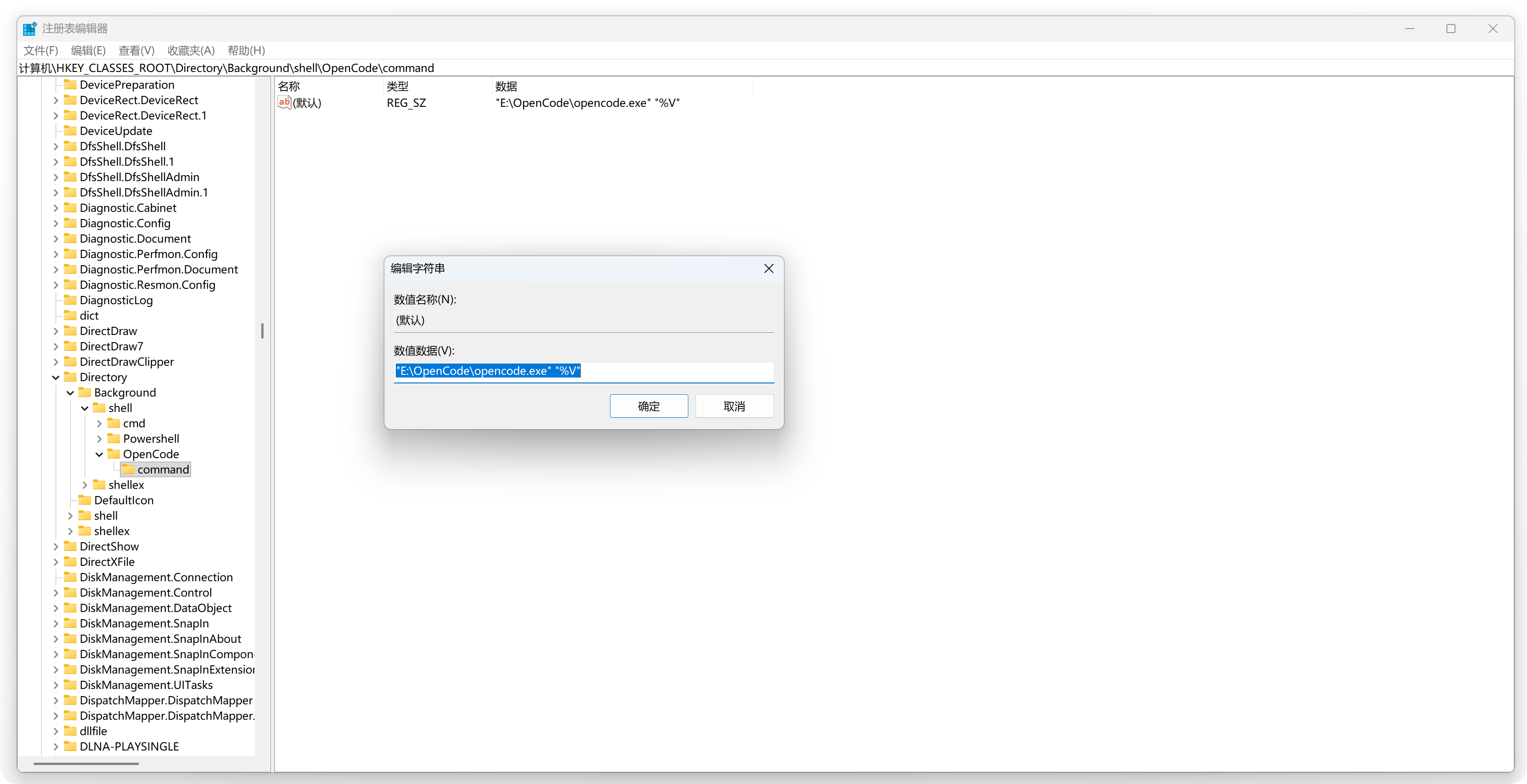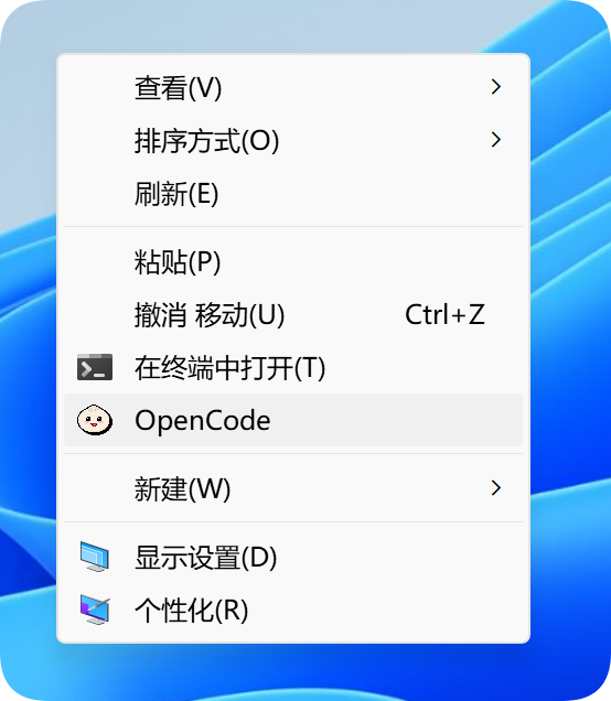 右键 OpenCode