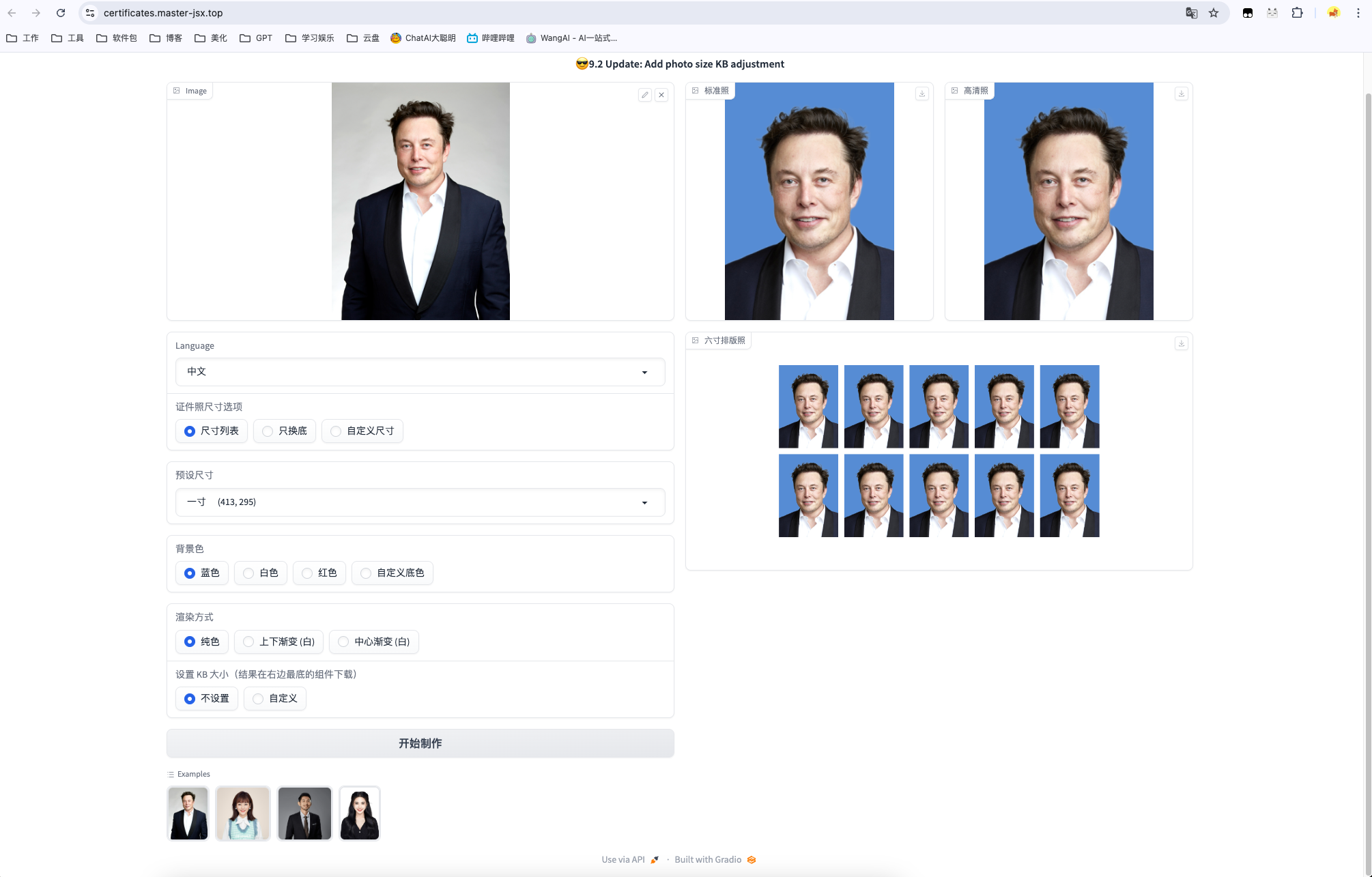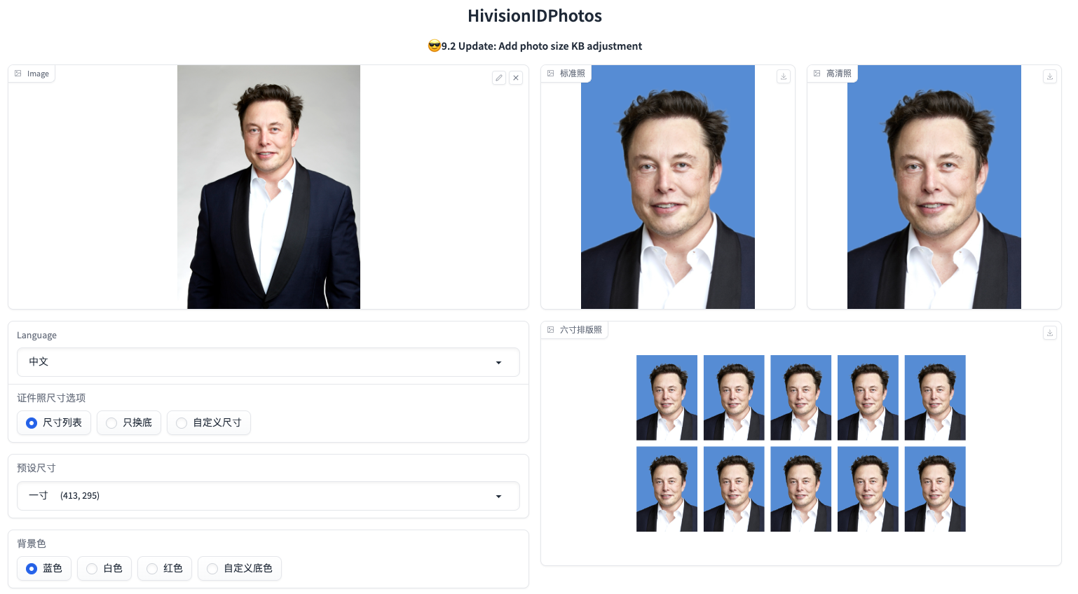 使用HivisionIDPhotos制作证件照的过程非常简单。只需要上传一张正面照片,然后选择需要的证件照尺寸和背景颜色。