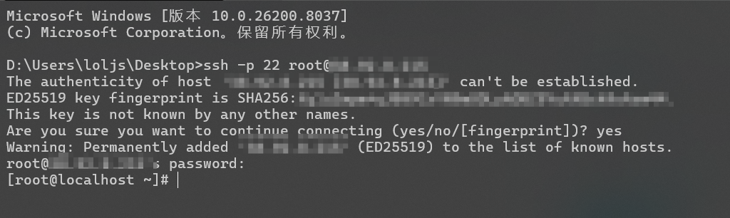 ssh -p 22 root@公网IP地址