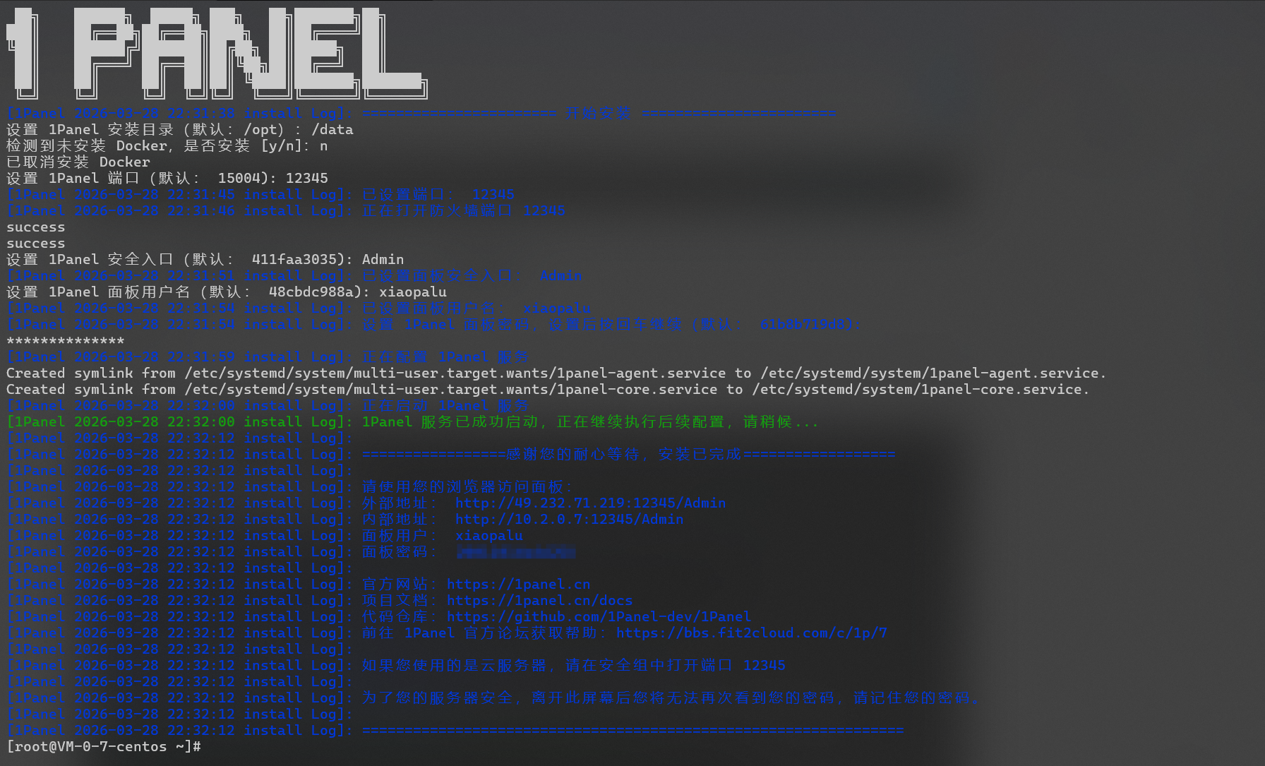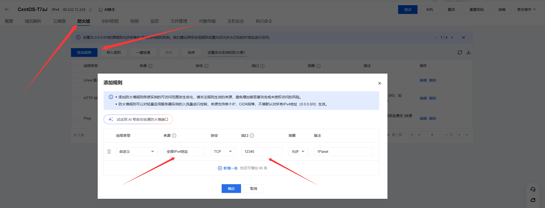 # 注意 设置好 1Panel 端口后需要去厂商开放对应的端口,比如我的设置的是12345厂商是腾讯,那我就得去腾讯开放一下 12345 端口
