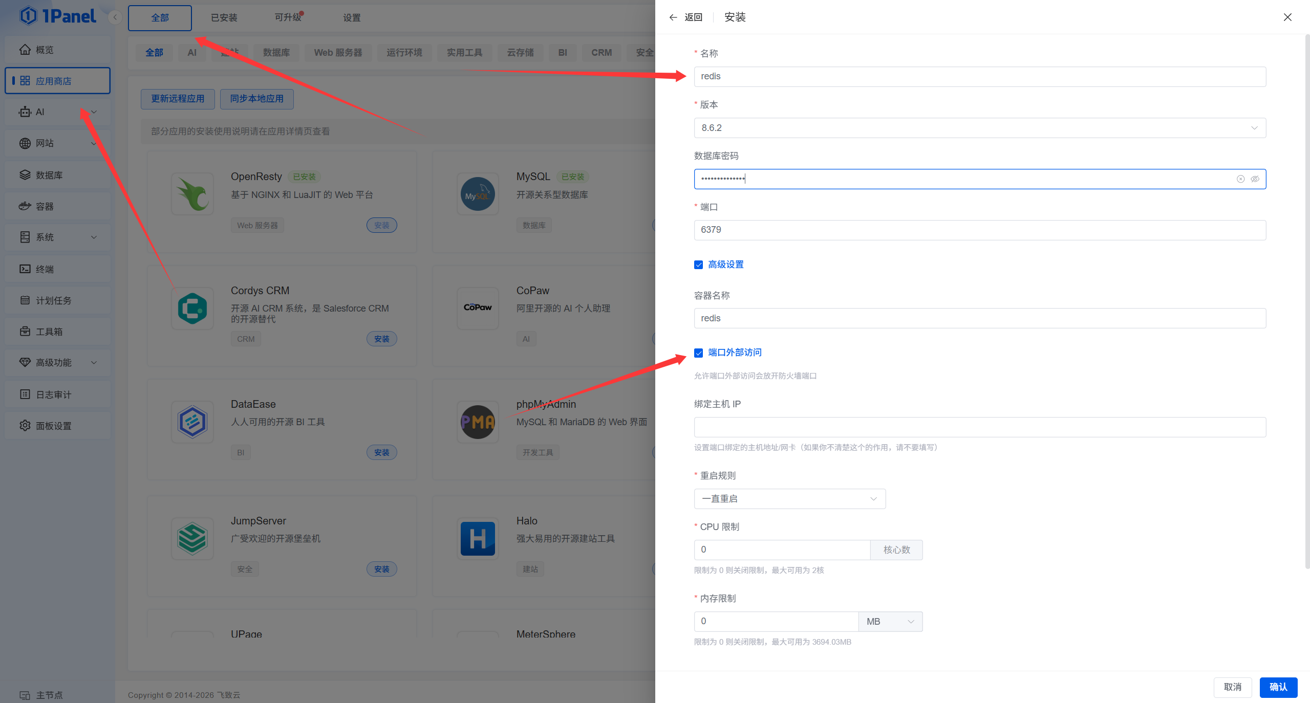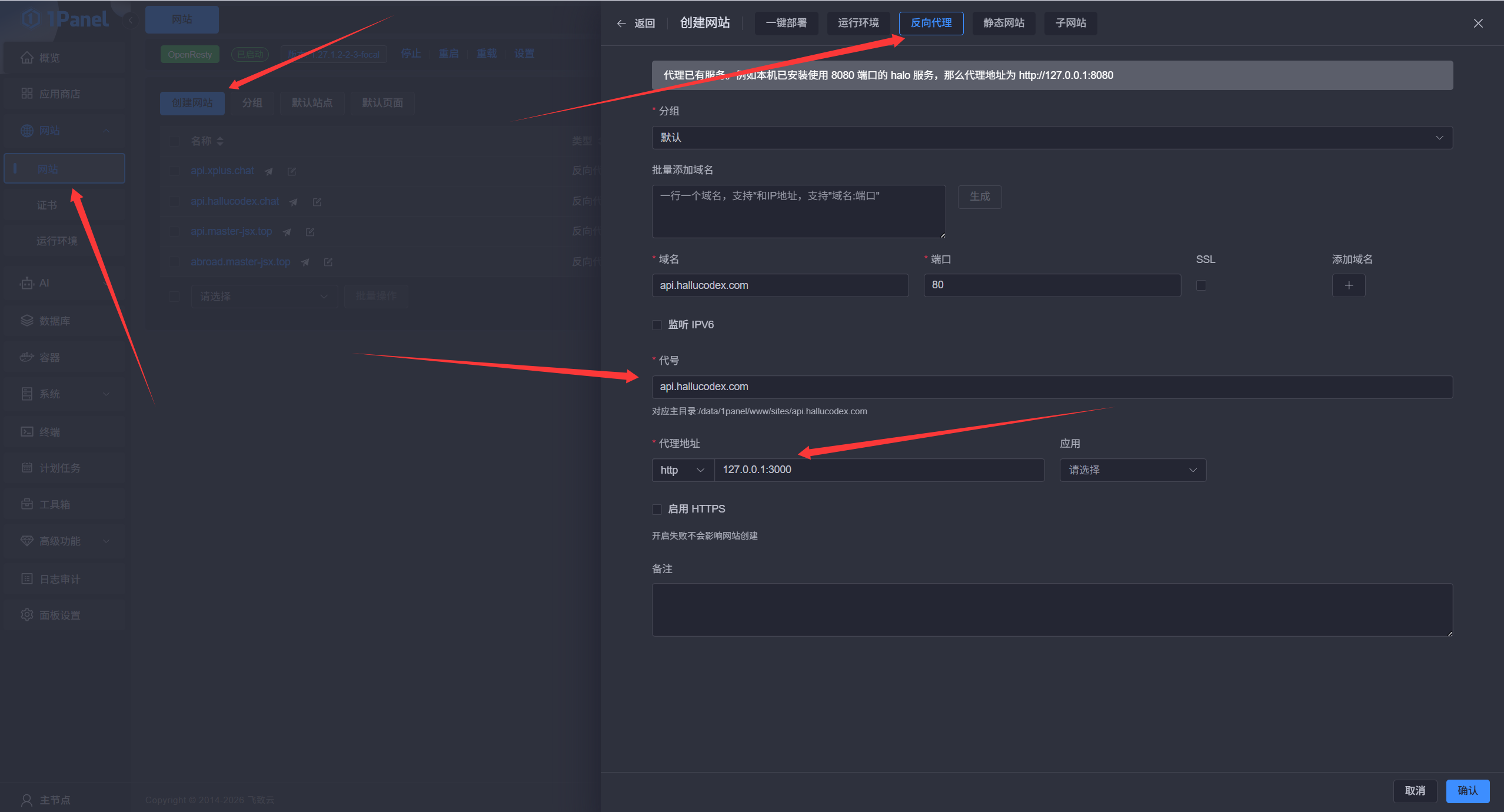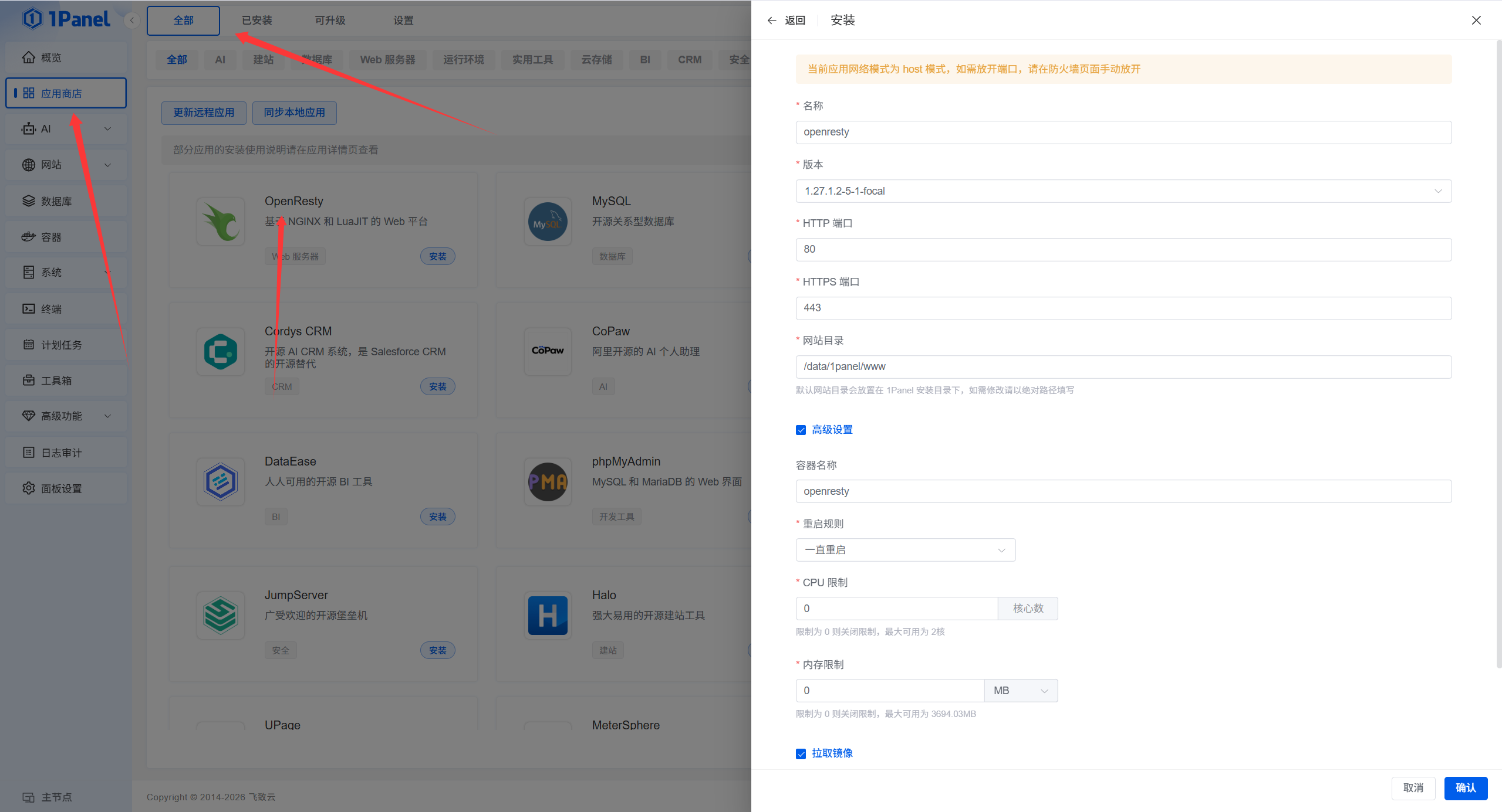 打开 1Panel 管理页面