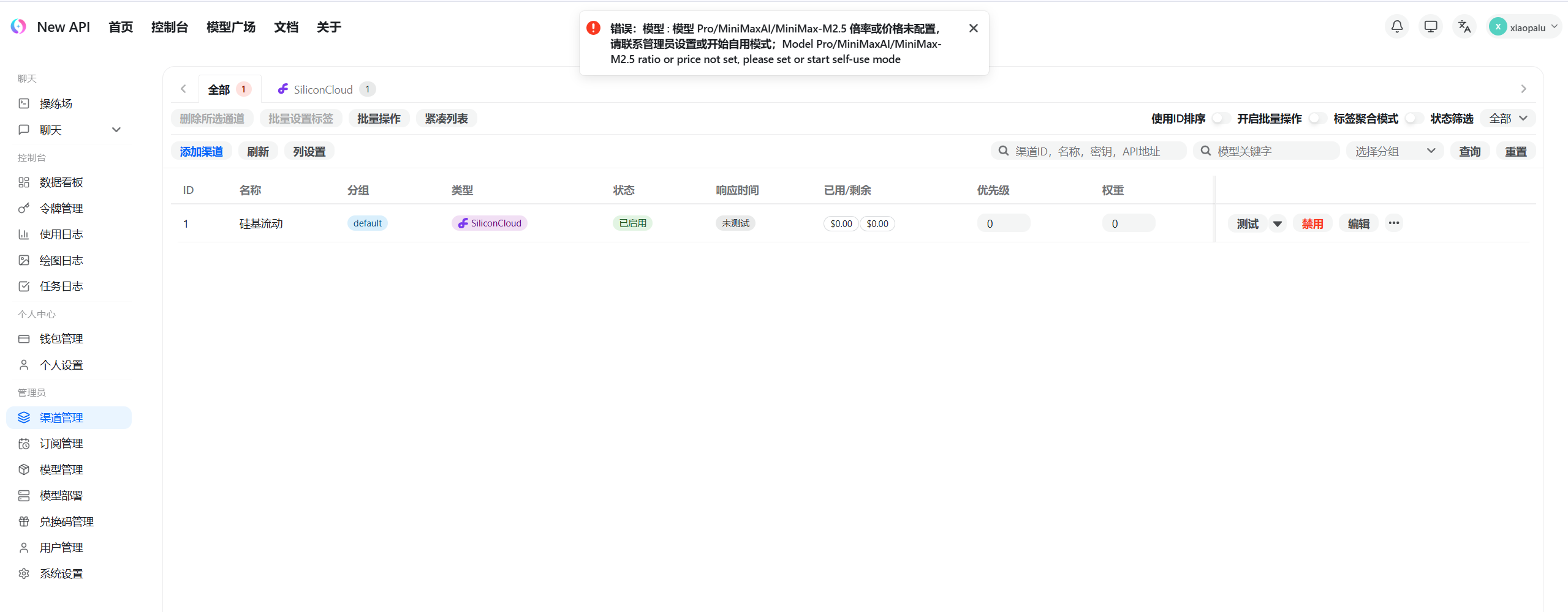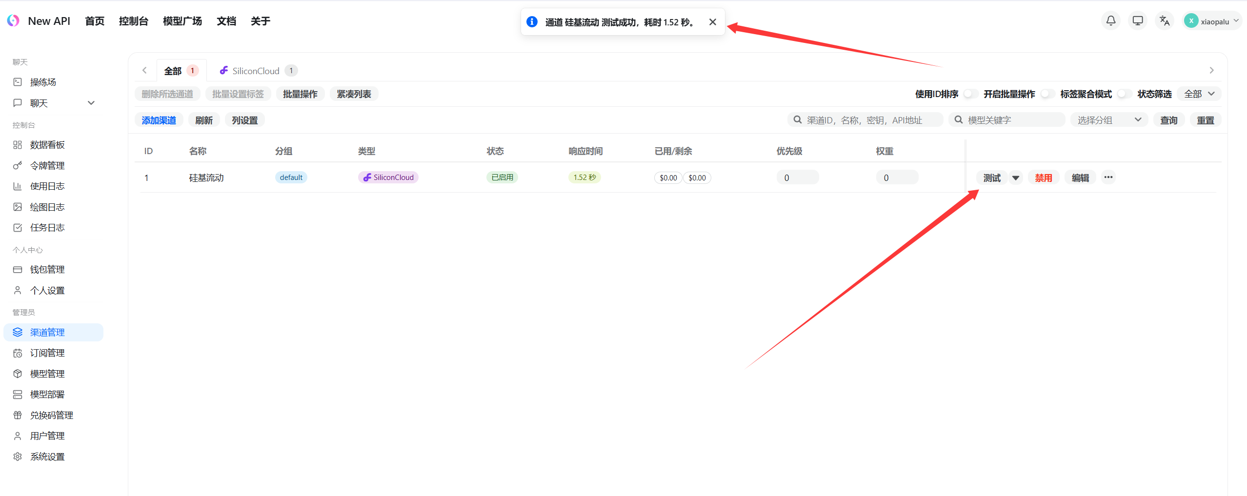 第六步:设置我们的第一个渠道(硅基流动)