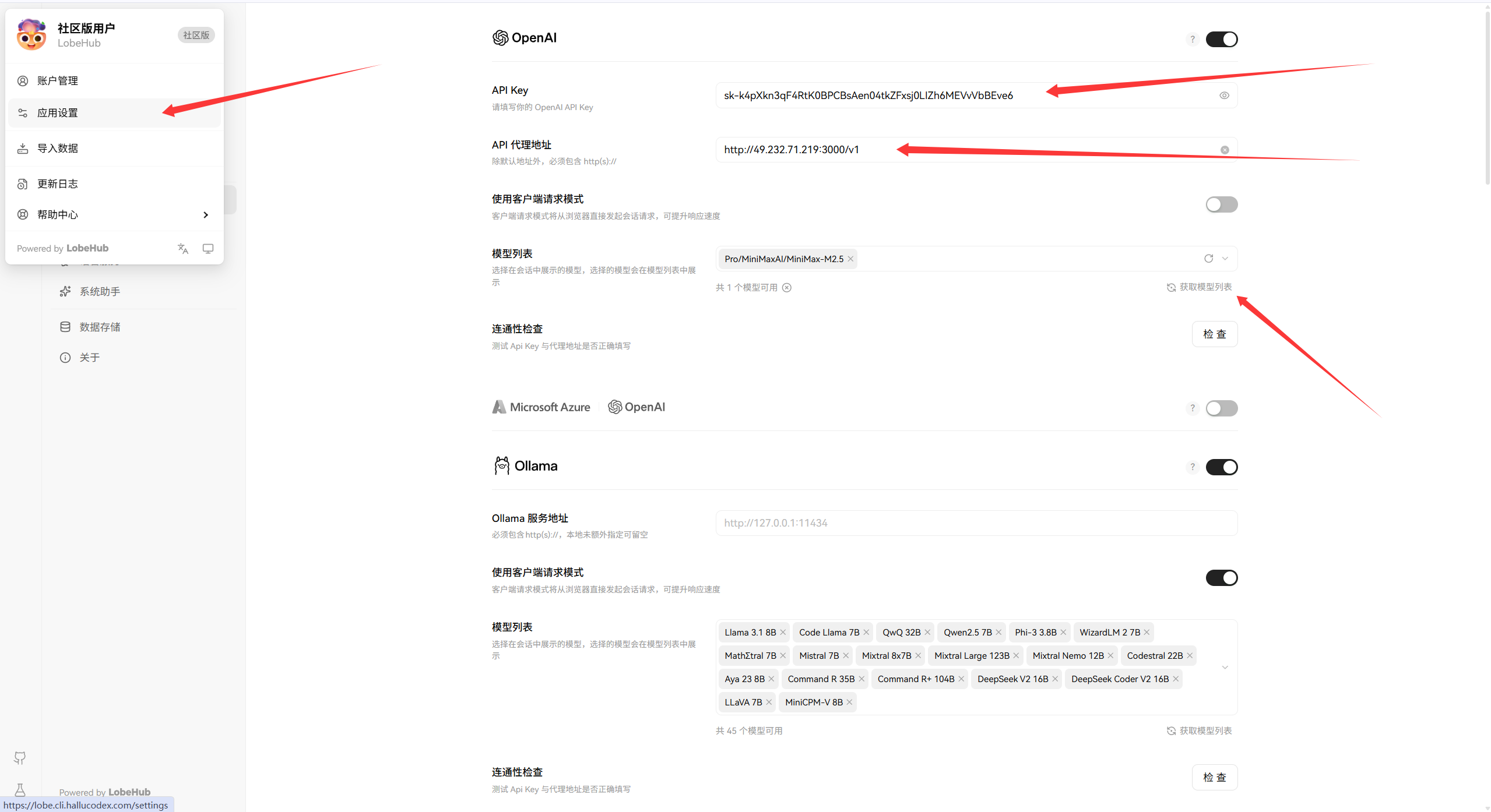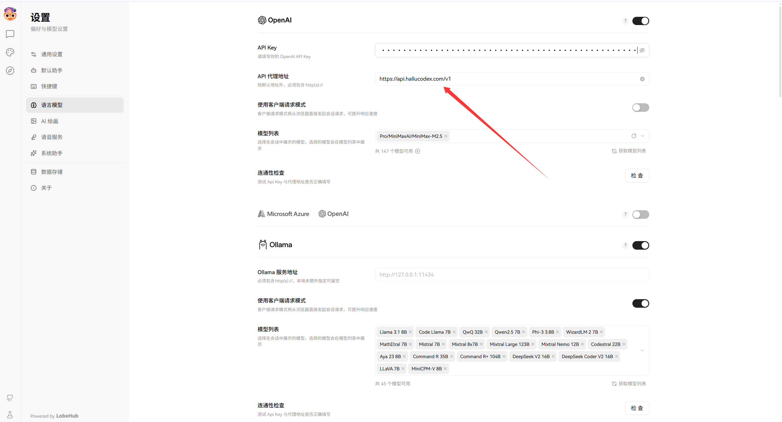 https://lobe.cli.hallucodex.com 直接放入我们的URL和KEY