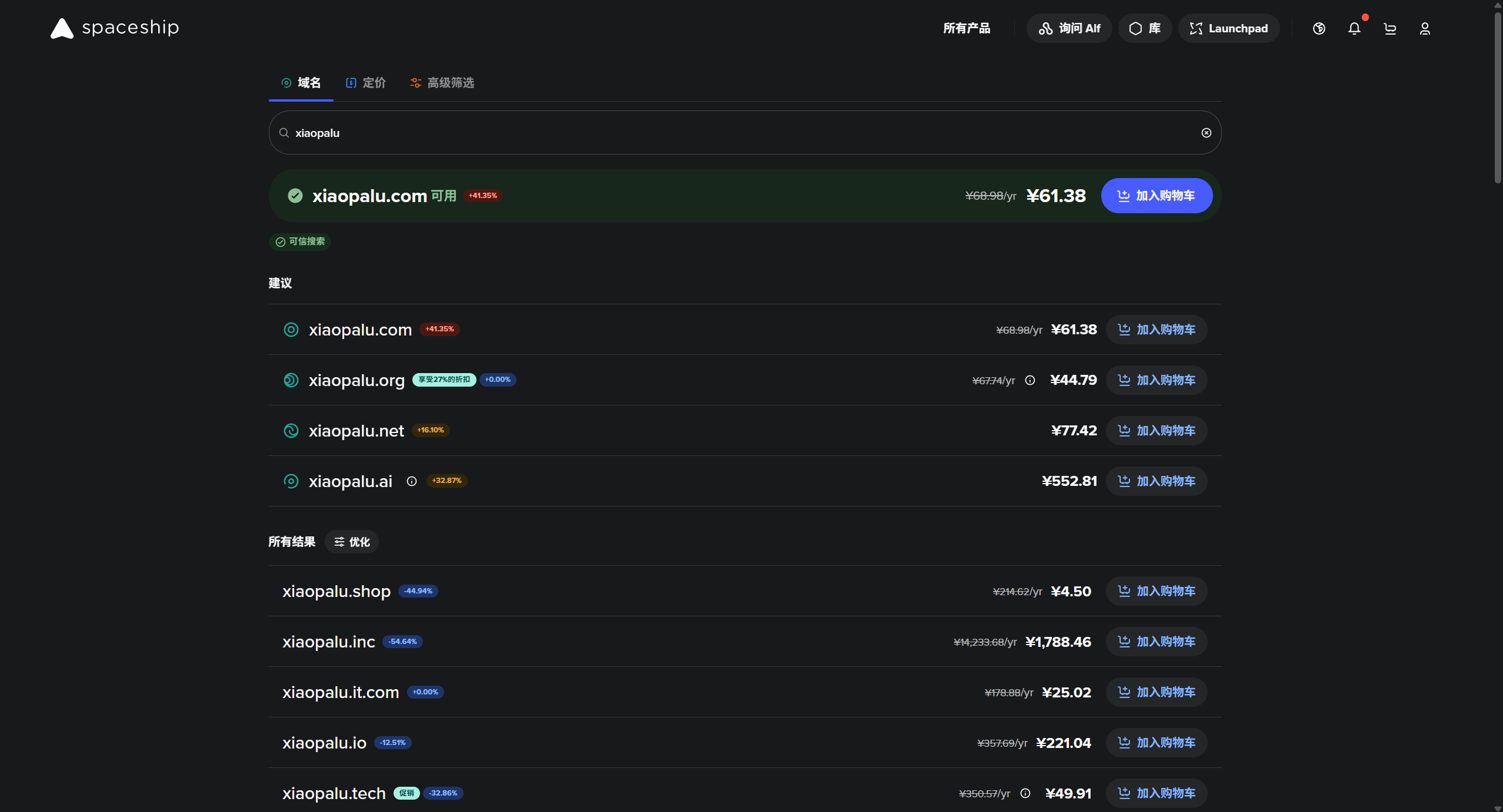 https://www.spaceship.com/zh/domains/ 支持支付宝支付