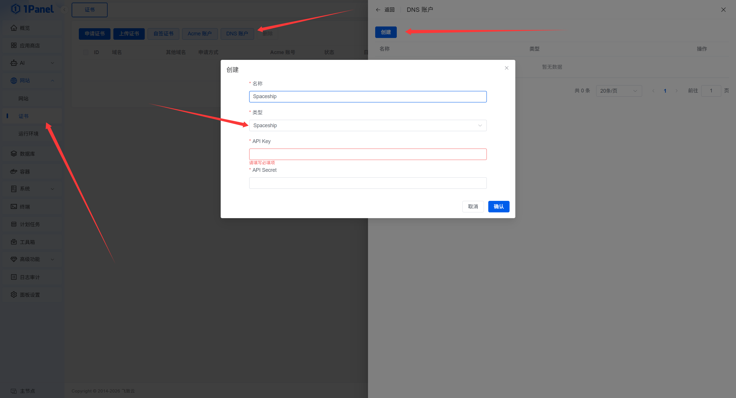 在 1Panel 中设置DNS账户