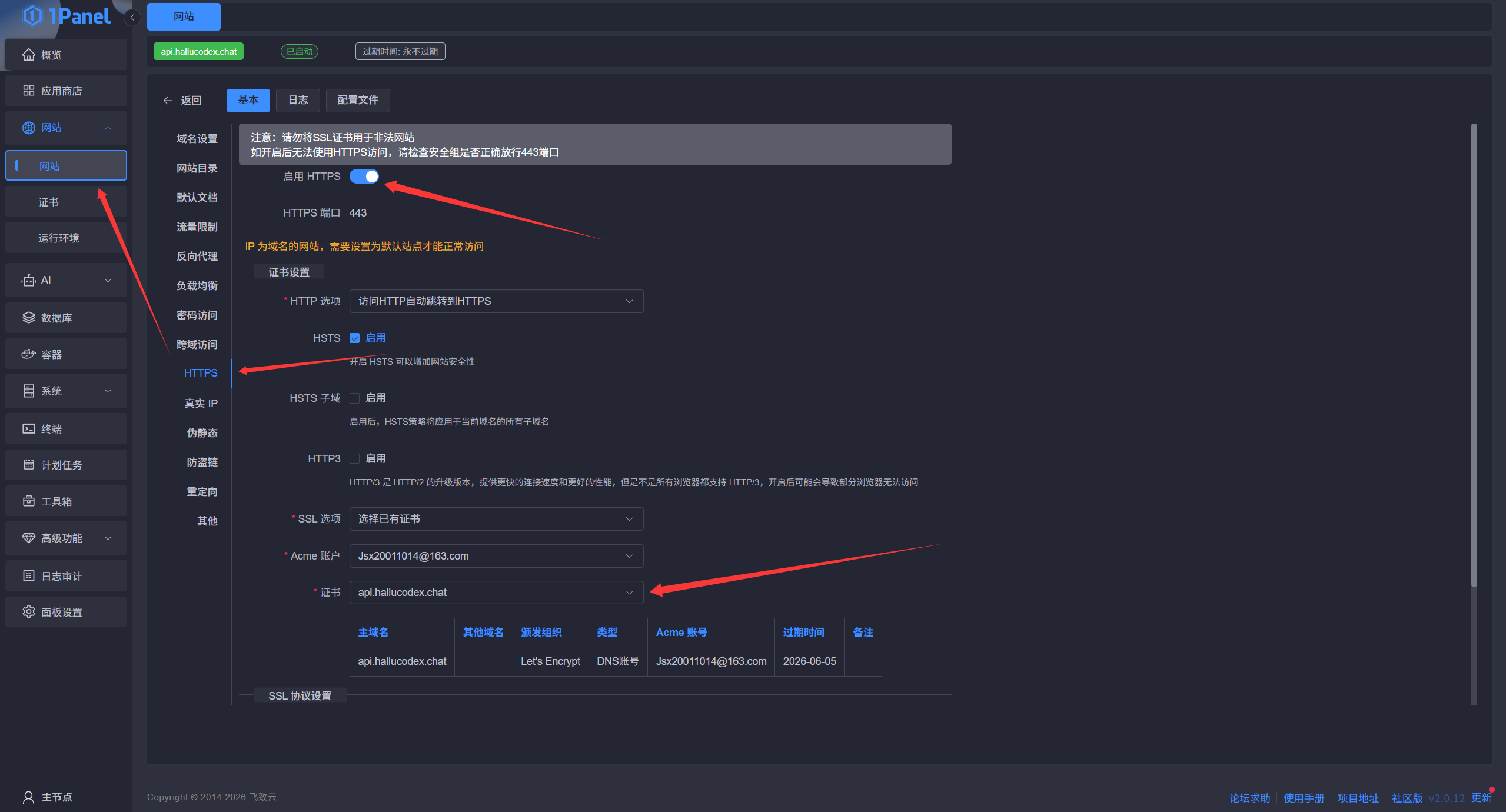 网站套用证书开启HTTPS