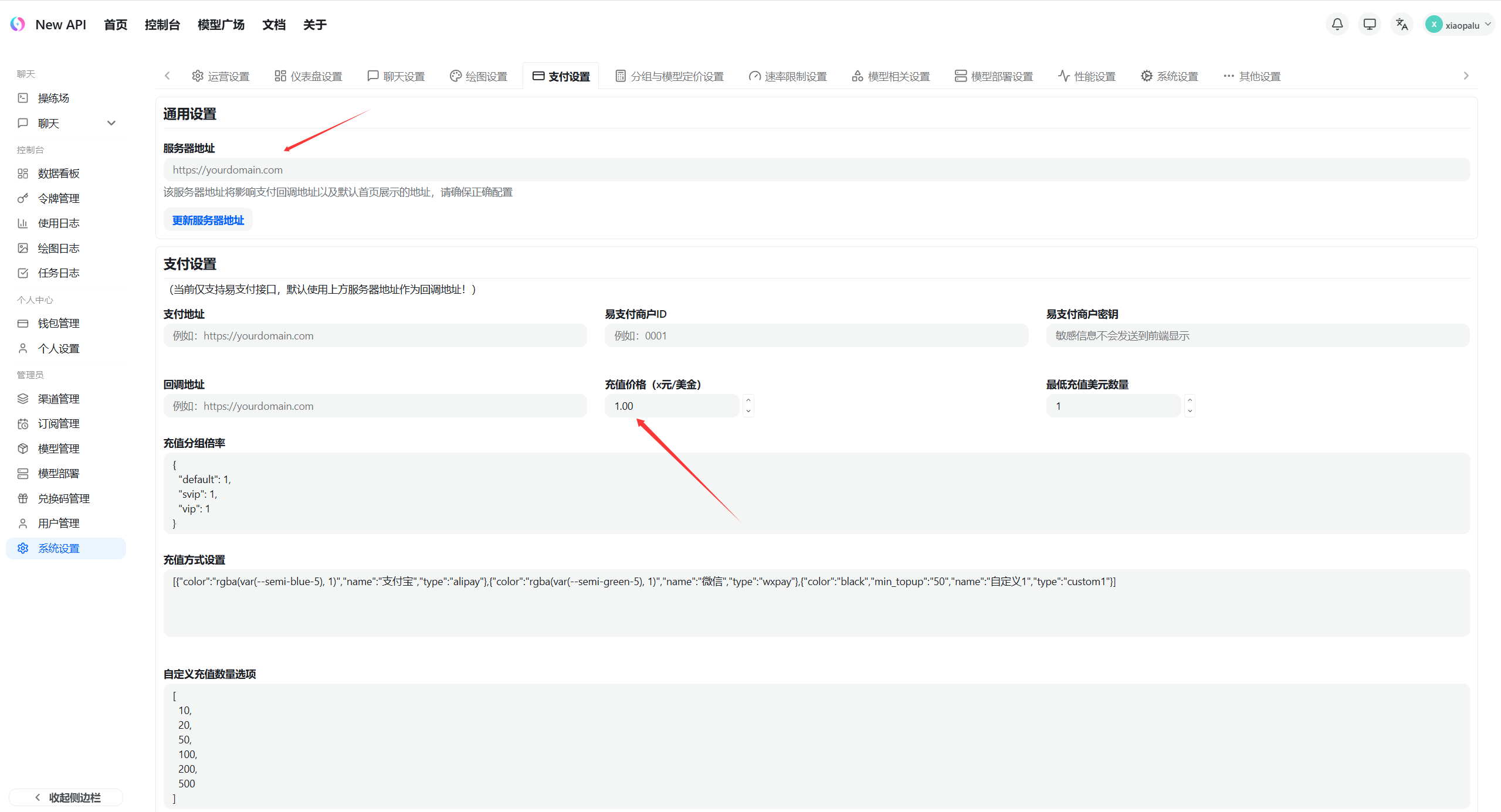 设置域名与充值比率