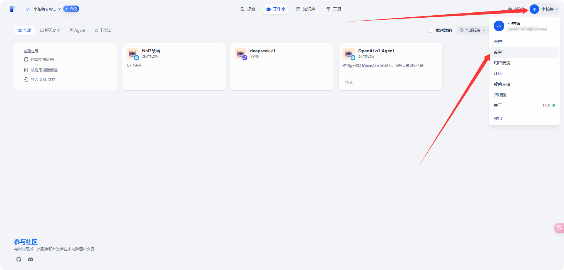登录 [Dify]-[个人中心]-[设置]