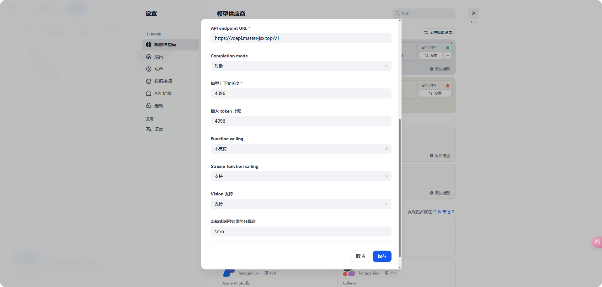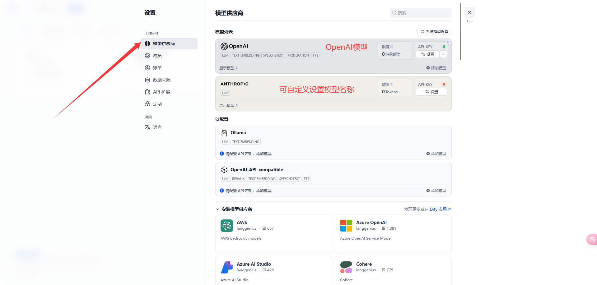 选择 [模型供应商]-[设置自定义模型]