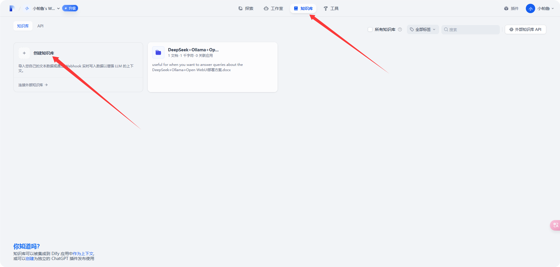 选择 [知识库]-[创建知识库]