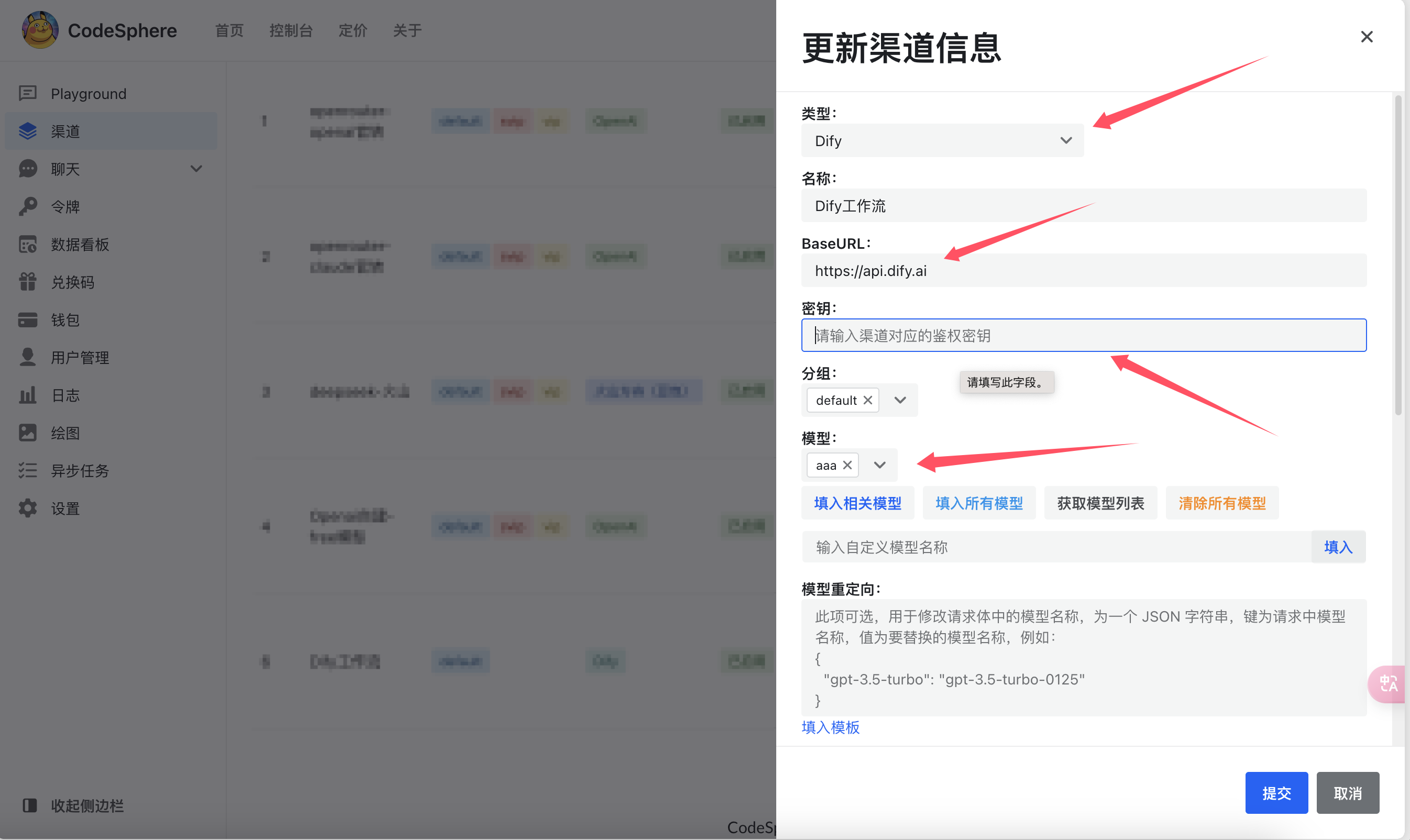模型:我们在New-api上自定义的模型名称