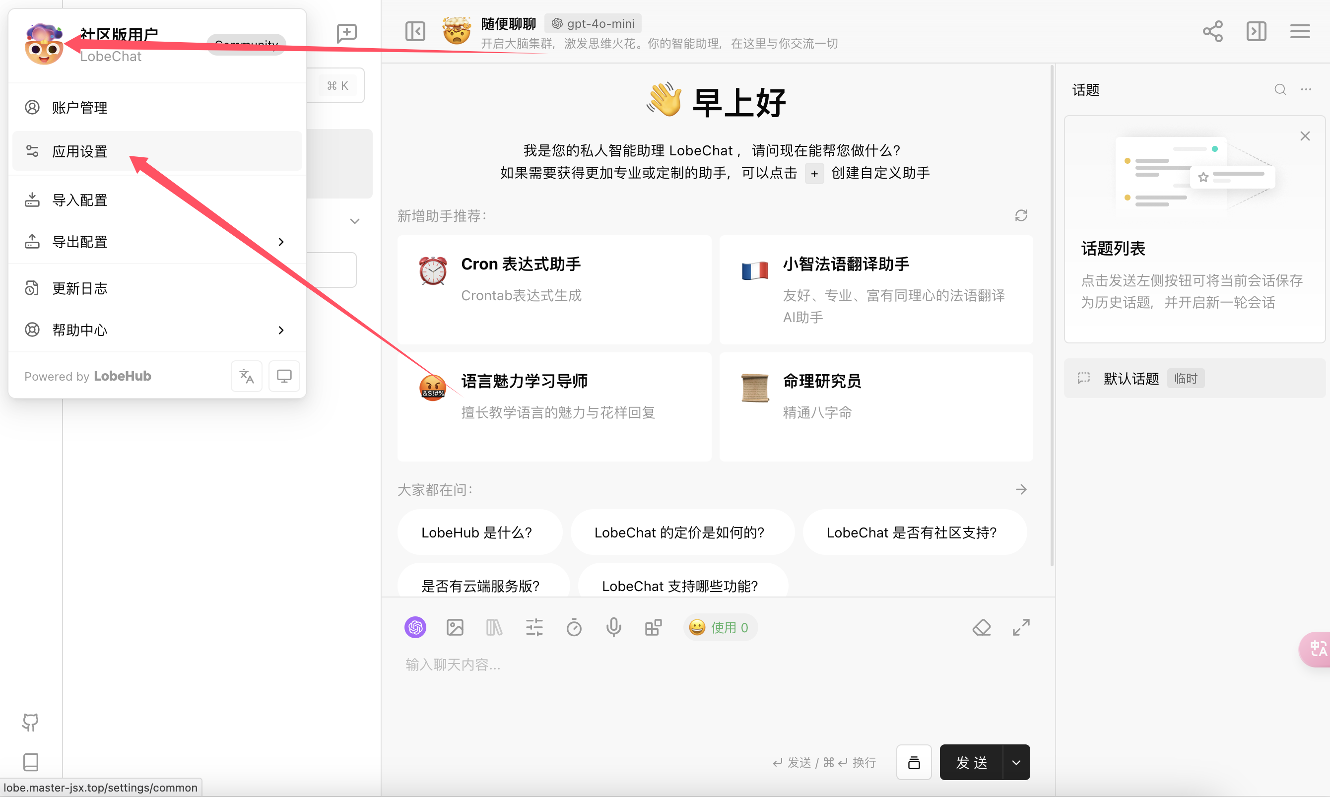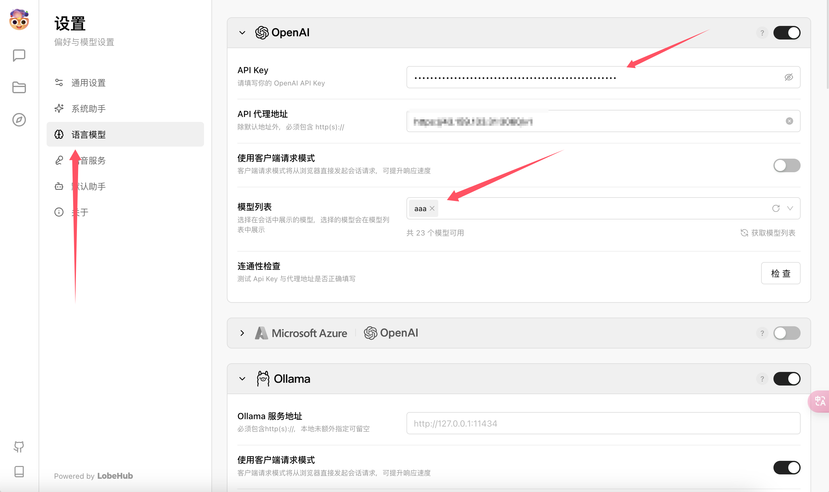 https://lobe.master-jsx.top/ 页面设置API信息!